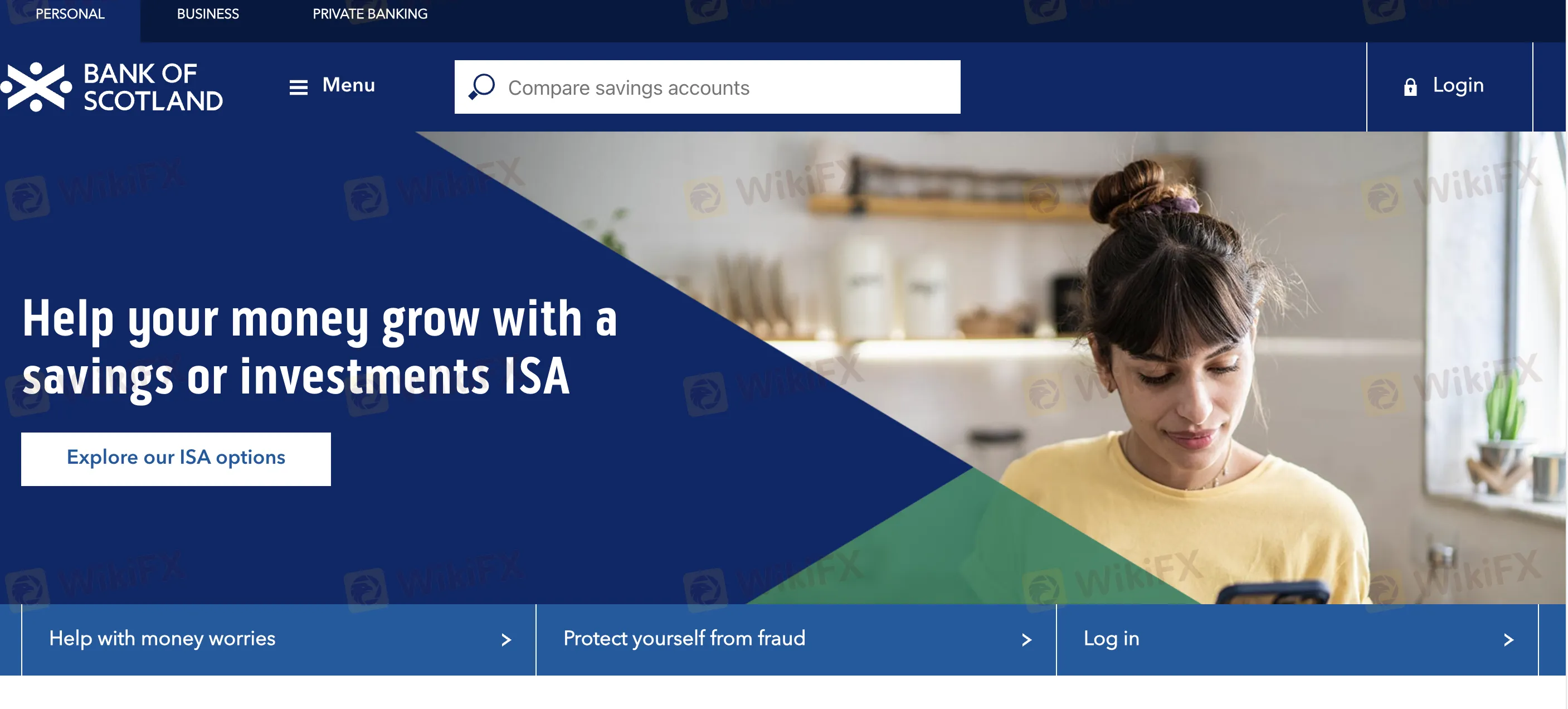 Bank of Scotland offers personal services, business services, and private banking services. When it comes to persenal services, the products include savings, loans, credit cards, mortgages, insurance, and investment products.