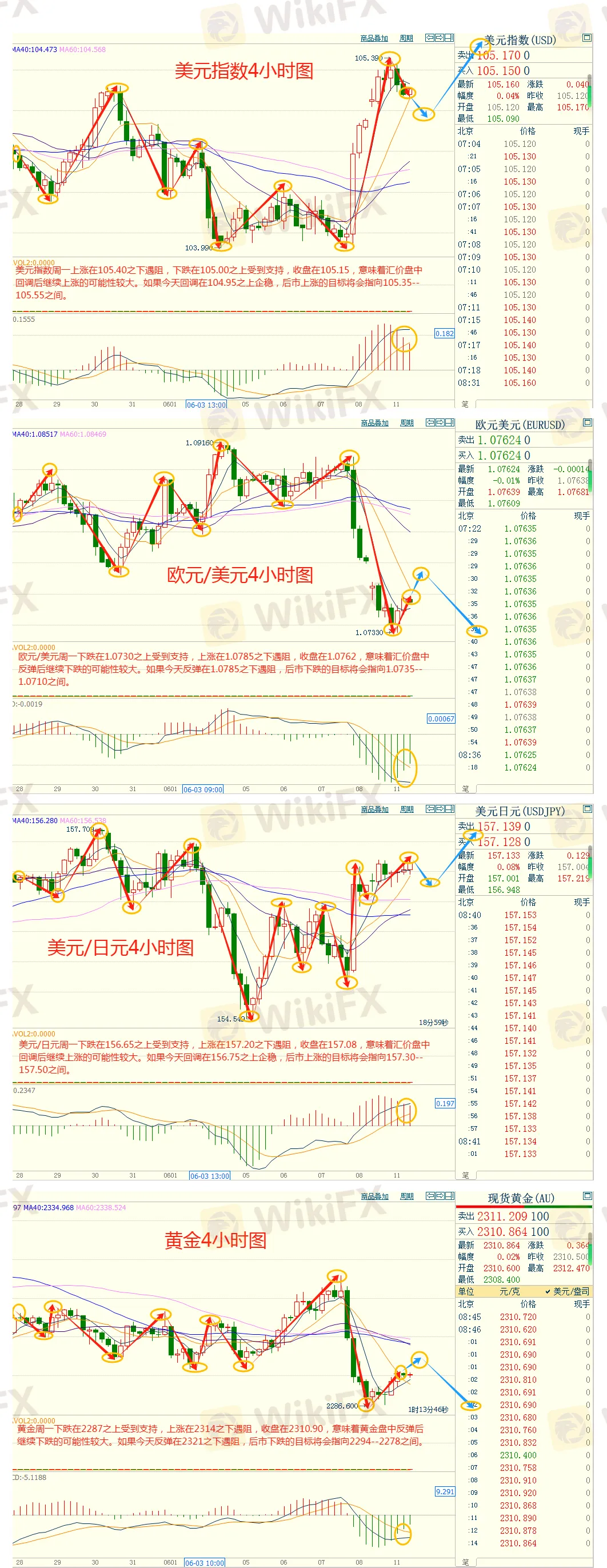 週一(6月10日)因近期美國經濟數據強勁,美元指數有所反彈,但因市場普遍預期週三美國CPI數據或顯示通脹降溫,美元指數在觸及105.39後於美盤回吐日內大部分漲幅,最終收漲0.19%,報105.13。10年期美債收益率最終收報4.4660%。對美聯儲政策利率最敏感的2年期美債收益率最終收報4.8890%。