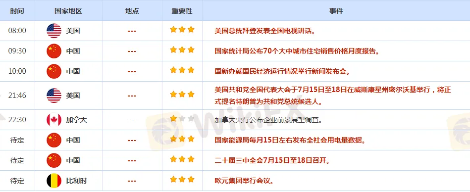 CWG Markets市場資訊2024年7月15日(週一):
