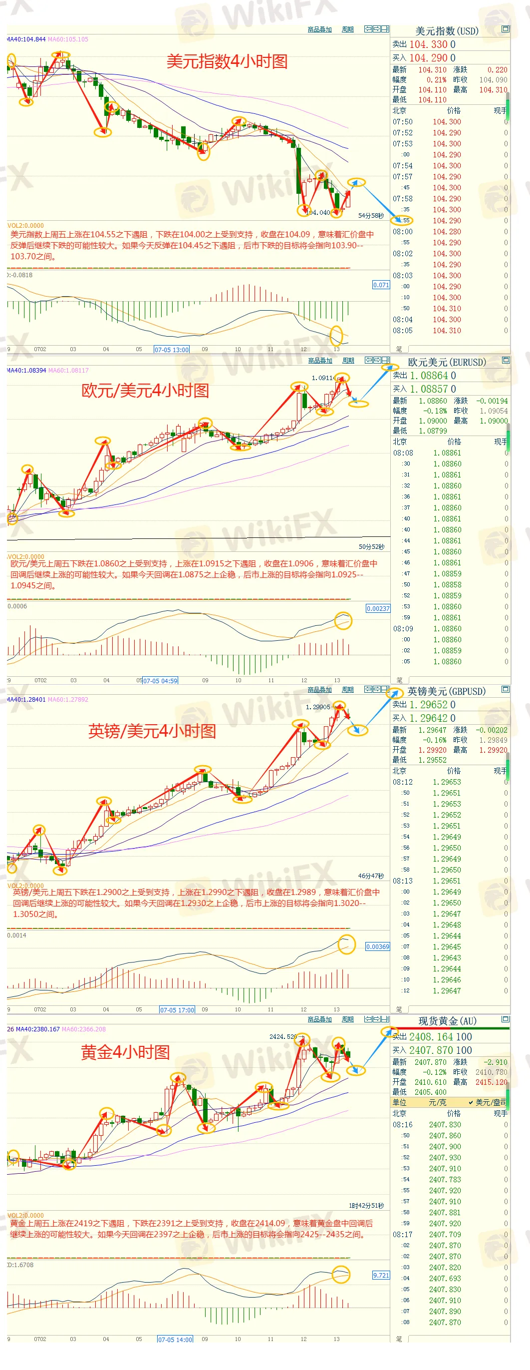 美元指數:可以在104.45---103.90的區間的上限賣出,有效破位30個點止損,目標在區間的下限。