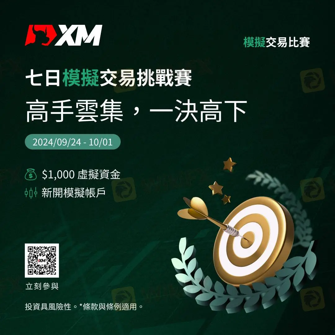 摘要:參加 XM 模擬交易比賽,體驗真實市場的激情與挑戰!你將在無風險的環境中測試各種策略,積累投資經驗,提升交易技能。2024年09月24日至10月01日期間報名參賽,挑戰自己,瓜分總值 $10,000 美元現金獎勵!比賽亮點:1. $1,000 美元虛擬資金2. 自動新開模擬帳戶3. 免費報名立刻報名參賽,掃描下方海報 QR Code!