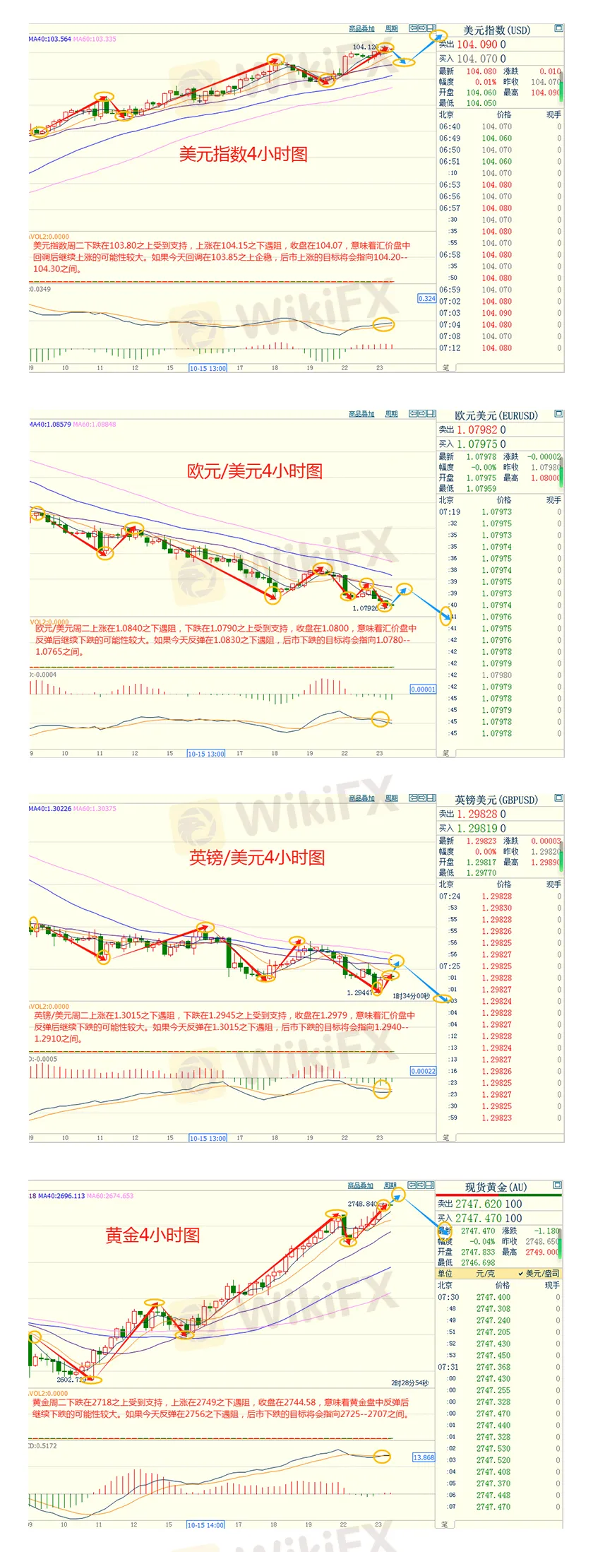 美元指數:可以在104.30---103.85的區間下限買入,有效破位20個點止損,目標在區間的上限。