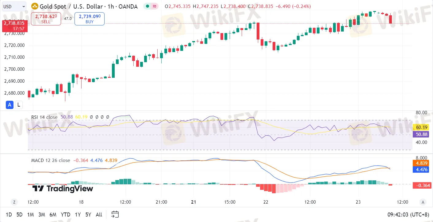 摘要:產品:XAU/USD預測:上升基本分析: 金價飆升至歷史新高,接近2750美元關口,受到地緣政治緊張局勢和美聯儲進一步降息預期的支撐。儘管美國國債收益率上升,但風險規避情緒和對特朗普再次當選的擔憂推動了對黃金的避險需求。交易員預計到年底前美聯儲將降息42個基點,11月會議上有89.6%的機率會降息25個基點。技術分析: 周一的墓碑十字星蠟燭圖形態未能阻止金價的上升,金價繼續創下新高,接近2750美