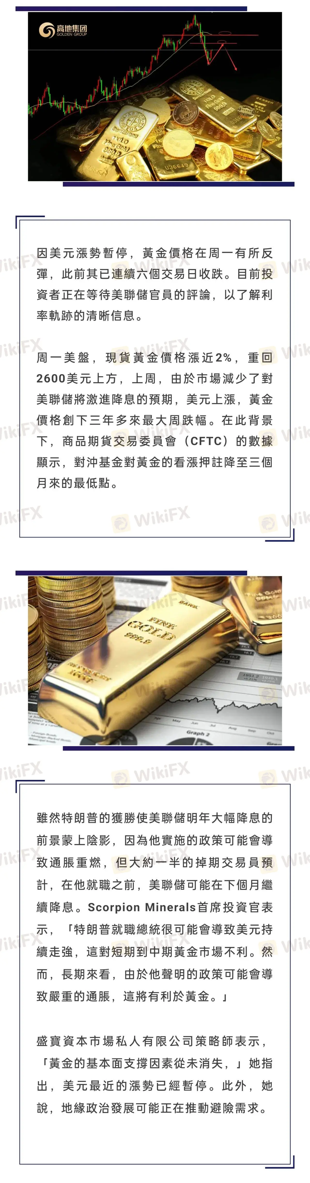 摘要:分析師表示,「我們可以從美元身上看到當前黃金價格調整的重要信號……我並不是說黃金已經找到了堅實的底部,但顯然,一些逢低買盤正在湧入以支撐市場。隨著年末臨近,我們將看到金價波動,無論美聯儲12月份采取什麼行動,都會有一些交易員進行清算和獲利了結。」近期公布的美國經濟數據使得市場動搖了美聯儲12月將降息的預期。至少有七位美聯儲官員本周將發表講話,其中一些人已經表示願意進一步放松貨幣政策。芝加哥聯儲主席
